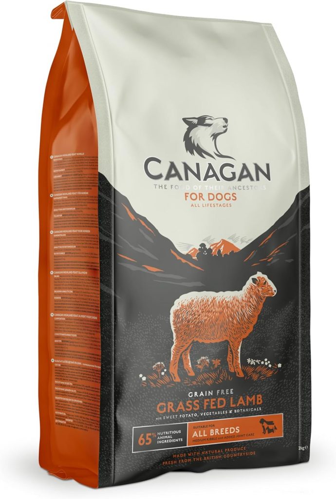 【カナガンドッグフード ラム】は、グラスフェッド(牧草飼育)のラム肉55.8%を使用したドイツ製グレインフリーフード。タンパク質30%・脂質16%・382kcal/100g。鶏肉アレルギー対応の単一タンパク源設計で、デリケートな犬にも安心。